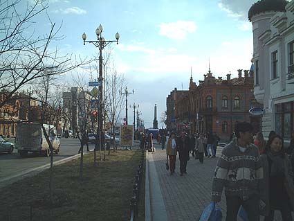 | 前頁のコムソモール広場から行政中心地区のレーニン広場へ貫くムラヴィヨフ・アムールスキー通りの街並み。